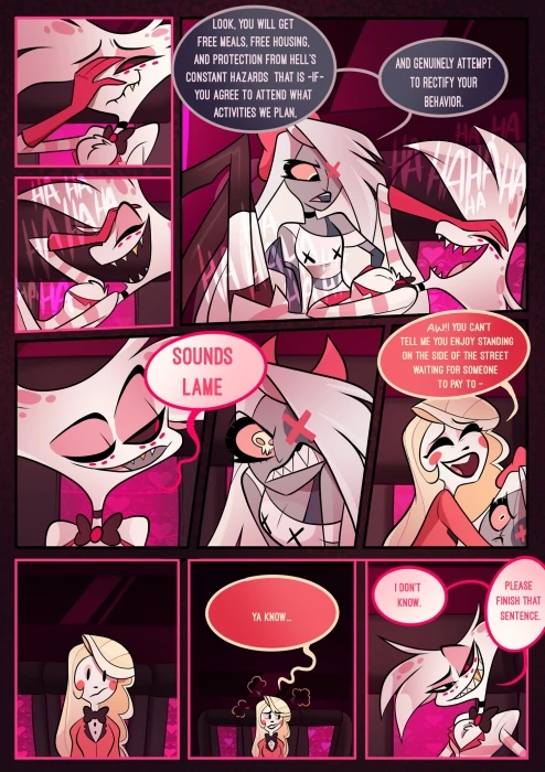 Комикс является приквелом к пилотному эпизоду мультсериала «Отель Хазбин», рассказывающий историю первого знакомства Энджела Даста и Чарли с Вегги.